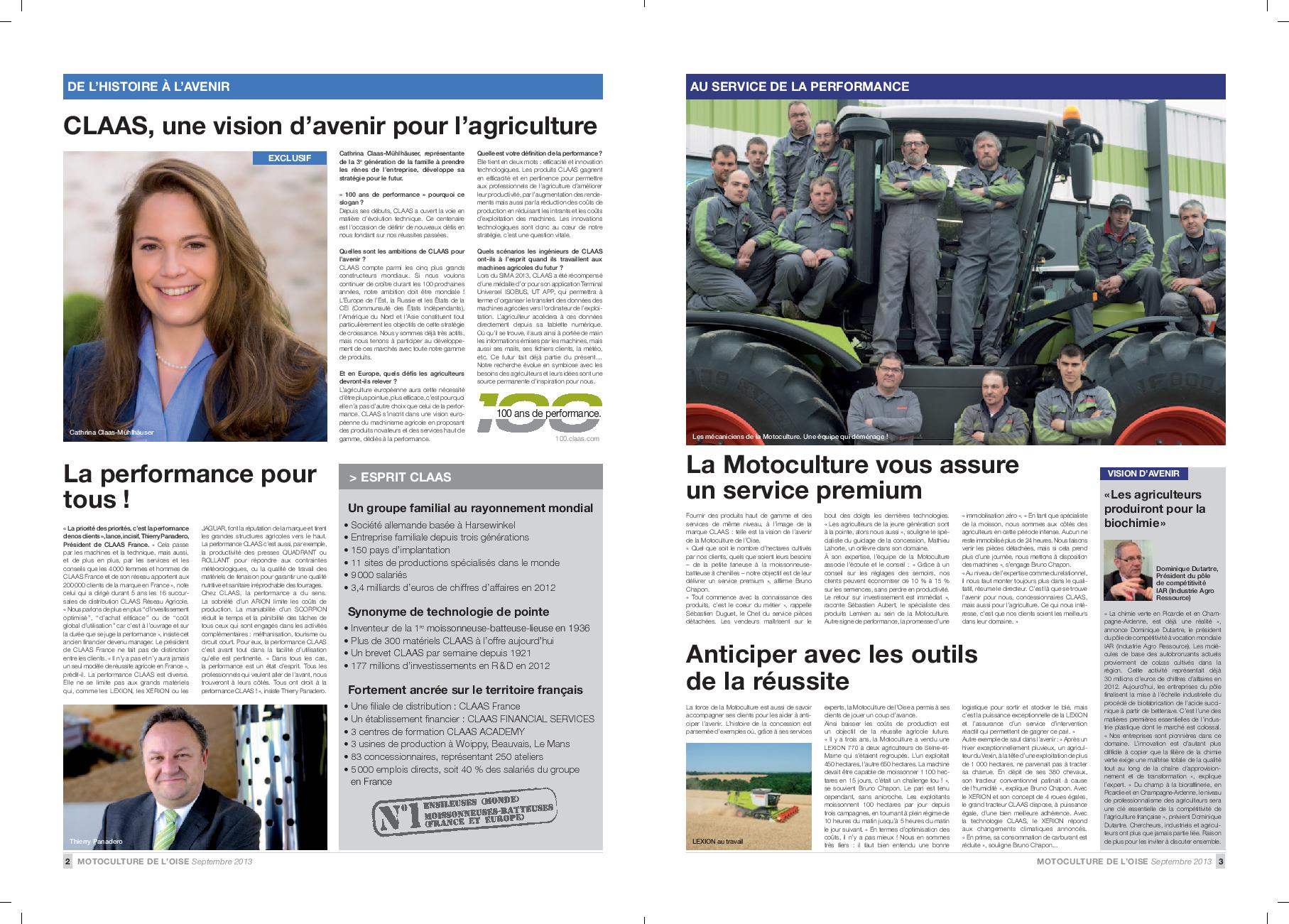 Nous l'avons déjà dit : les voies de la réussite agricole en France sont multiples. C'est bien pour cela, pour reprendre une expression chère à notre président, que nous nous intéressons « à tous les clients, à tous les secteurs ». Ensemble, faisons que le nom de CLAAS soit synonyme de réussite agricole.